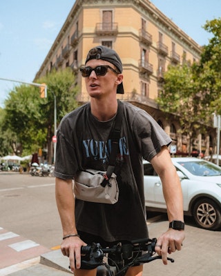Falte die Sling in deine Tasche oder dein Handgepäck. Bei Bedarf kannst du sie für freihändige Ausflüge auspacken.