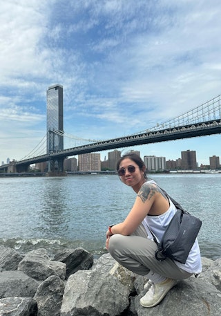 Falte die Sling flach zusammen und packe sie in dein Gepäck. Wenn du ankommst, kannst du sie für Exkursionen in der Umgebung nutzen.